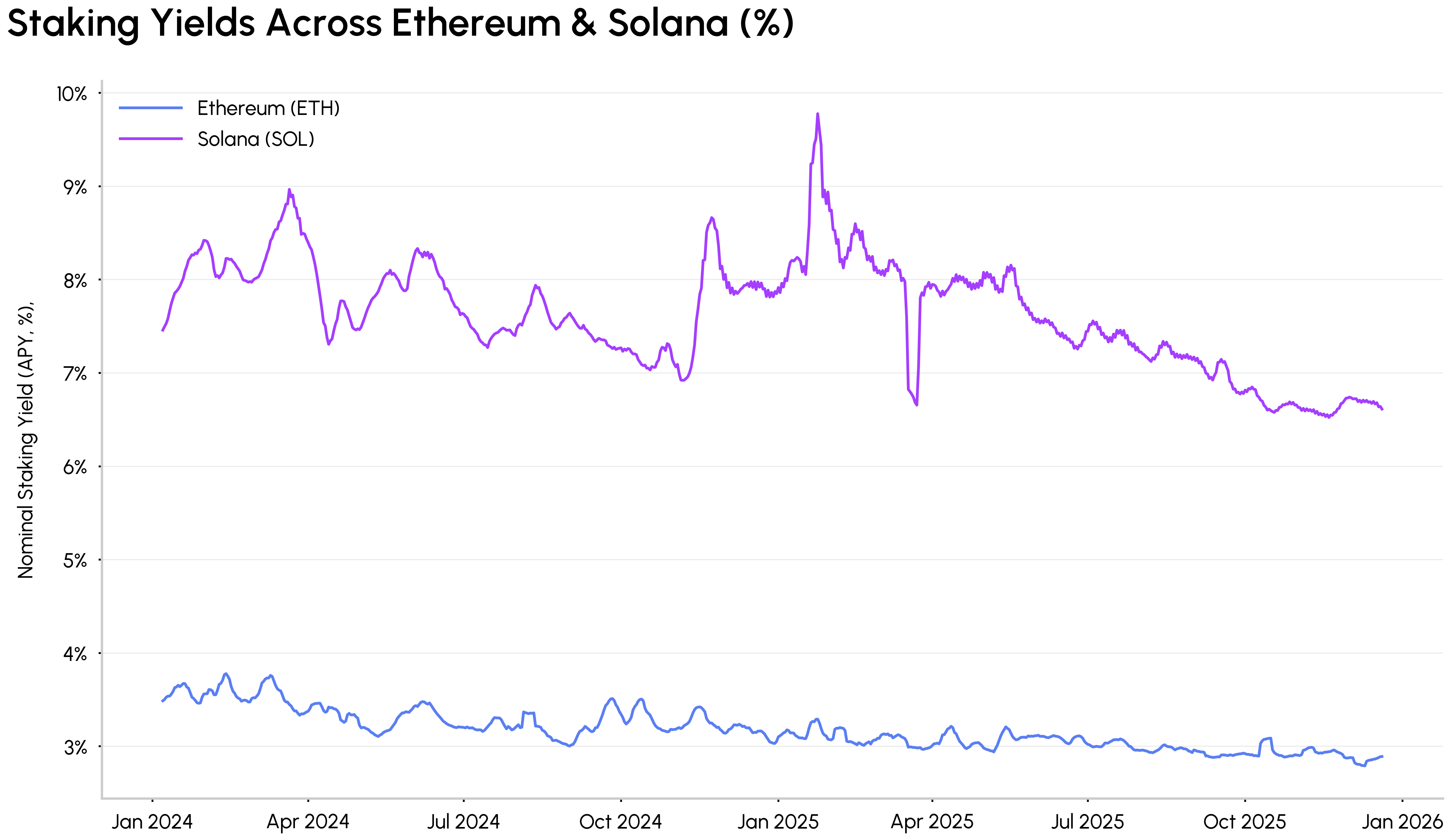 O rendimento nativo dos tokens da rede proof-of-stake é o próximo passo nessa convergência. Produtos habilitados para staking, desde os ETFs de Ethereum com staking da BlackRock até estratégias de tesouraria que aplicam ativos ativamente, apontam para um futuro que combina valorização de capital com rendimento on-chain, transformando a exposição a criptomoedas em um componente produtivo e gerador de renda de portfólios institucionais.